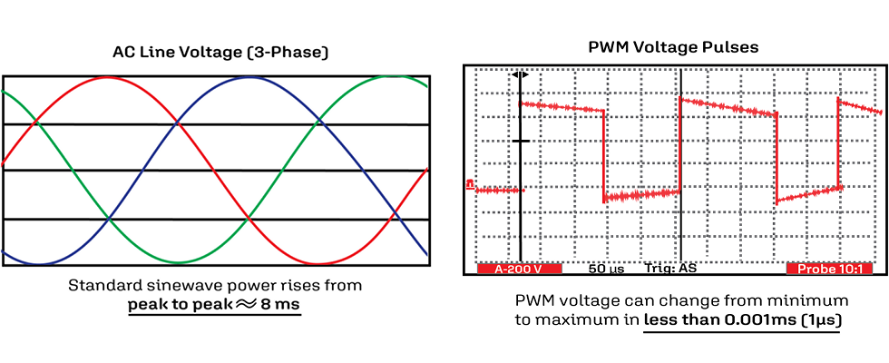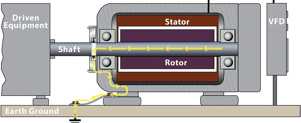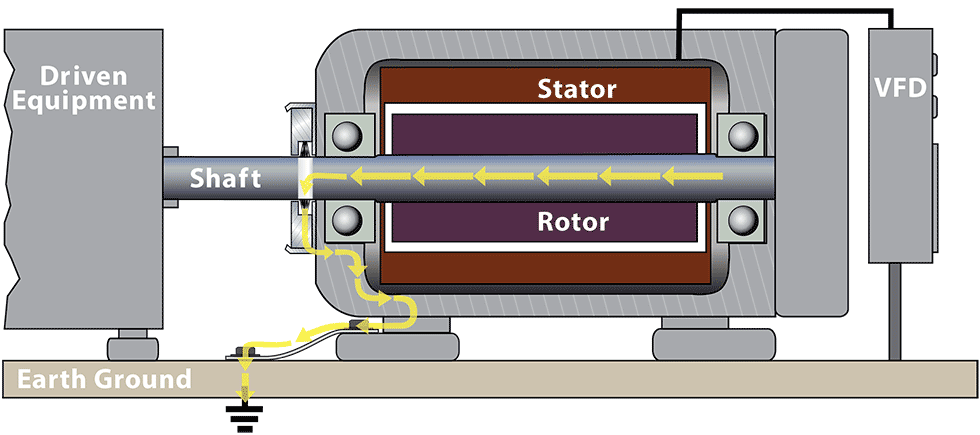 High frequency currents, fast-rising voltage pulses and high switching frequencies of VFDs will find the path of least resistance to ground in an unprotected motor. This path is usually through the bearings.